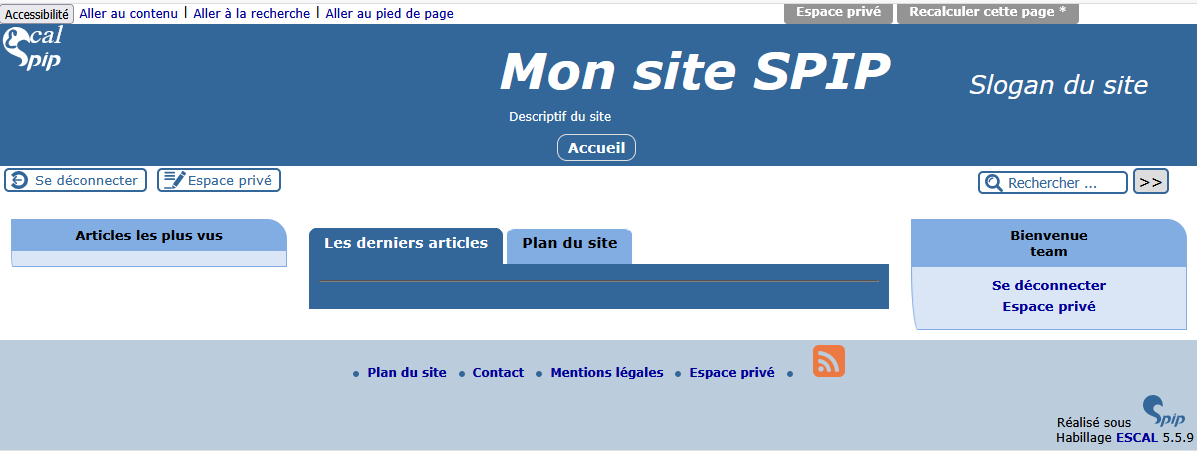 Introduction Lors de la première installation d’un site SPIP et du squelette "Escal" sur un hébergement, le visuel obtenu est le suivant : Mis à jour : 18/01/26
