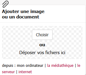 /tmp/uploaddu serveur. - depuis internet : permet d’ajouter une ressource distante, par exemple une photo présente dans une bibliothèque d’image ou un document présent sur un autre site internet.