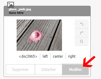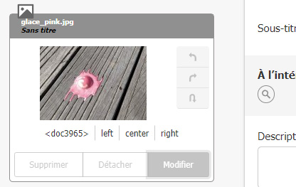 | Détacher l’image | L’image est supprimée de l’article mais elle reste disponible dans la médiathèque du site. On pourra donc l’utiliser ailleurs. |