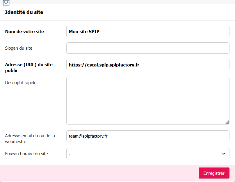 Notez au passage que ces informations importantes sont utilisées par des balises ou des formulaires présents dans les squelettes de votre site ; ces informations agissent sur le contenu de vos pages et donc sur le référencement de votre site.